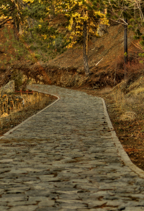 Far on cold mountain stone path slant