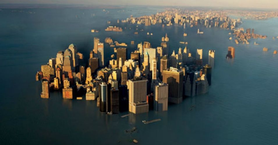 Roughly 10 feet of sea level rise—well beyond previous estimates—would render coastal cities such as New York, London, and Shanghai uninhabitable. (Image: Woodbine)