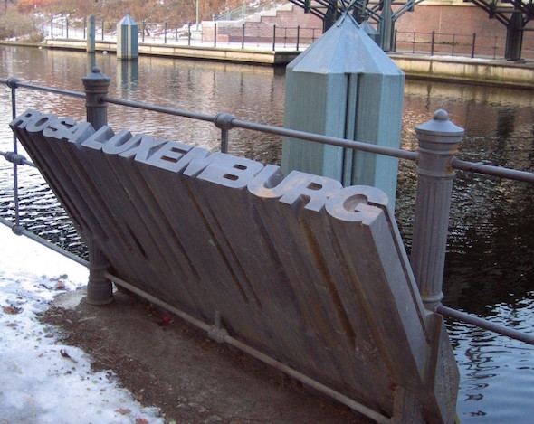 Rosa Luxemburg memorial at the site where she was thrown into the Landwehr Canal, Berlin.