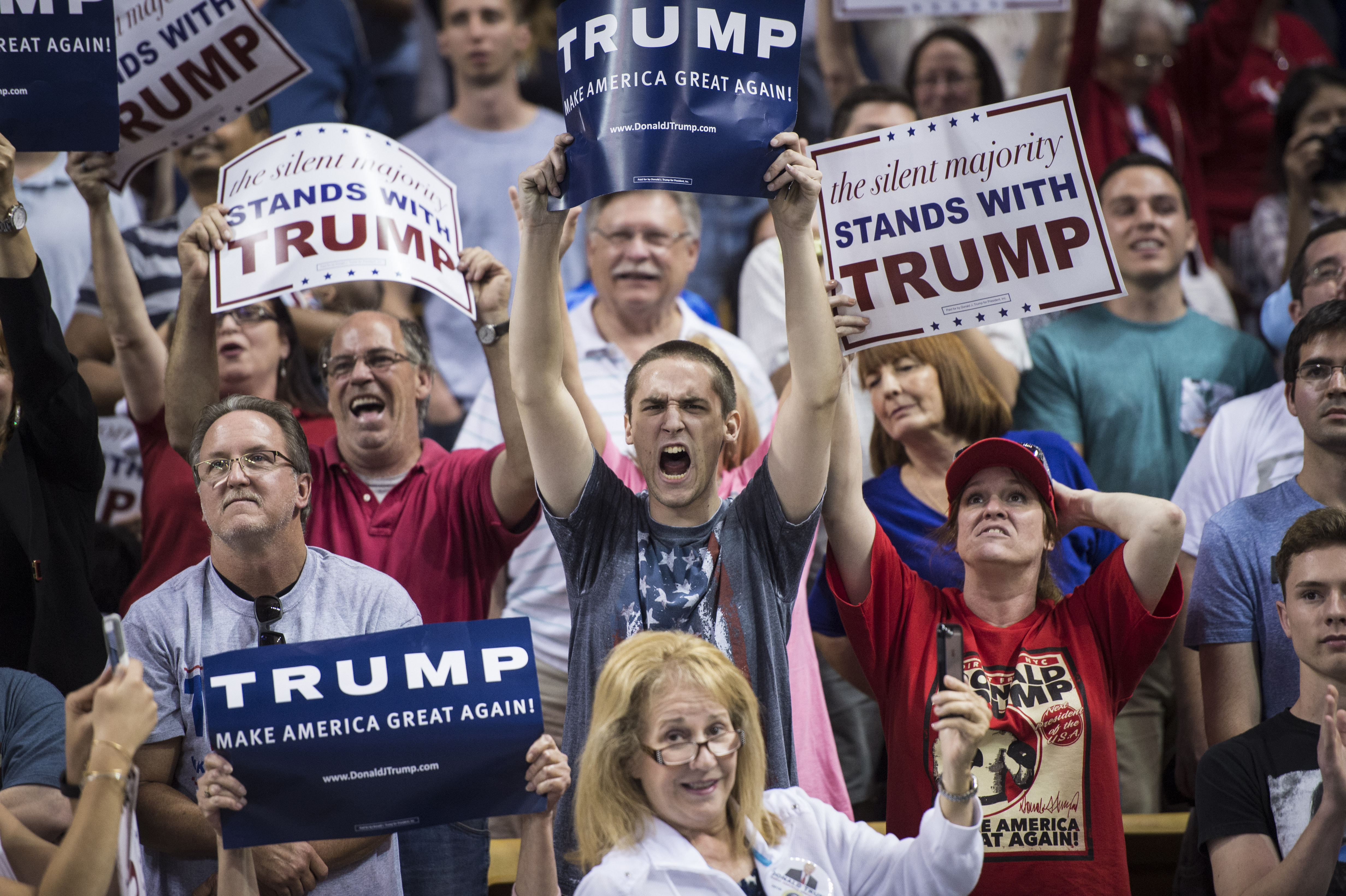 Supporters cheer as Donald Trump speaks in Orlando. Many political analysts are trying to understand why so many Americans are drawn to Donald Trump.
