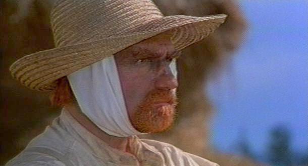 This ten-minute clip is taken from Dreams, a feature-length series of eight sketches by Akira Kurosawa released in 1990. Martin Scorsese, sporting a red beard and an unmistakable New York accent, appears as Vincent van Gogh, beady-eyed and intense, his head newly bandaged. Van Gogh explains the bandage to the young Japanese artist who has somehow managed to invade the world of van Gogh’s paintings, entering just down-river from the bridge at Arles: ”Yesterday I was trying to do a self-portrait, but the ear kept getting in the way.”