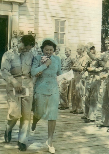 James and Amy were married on Saturday, May 16, 1942, in the U.S. Army Chapel at Camp Chaffee, complete with music, James’s fellow officers and their wives in attendance, and the ritual of throwing rice on the newlyweds.
