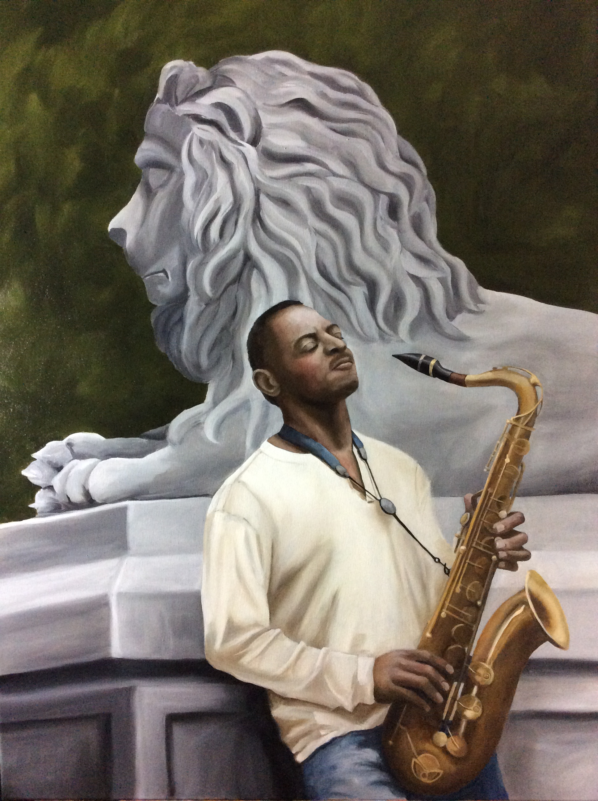 I typically give myself two months to complete a portrait; I painted Olu in two weeks. And I titled the painting not only as an homage to the subject, but also as a message to myself: “Undaunted Courage.”