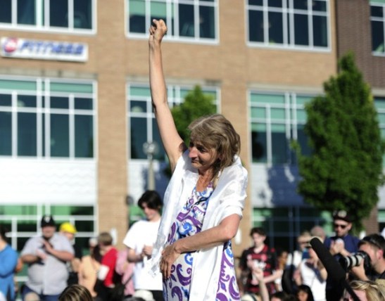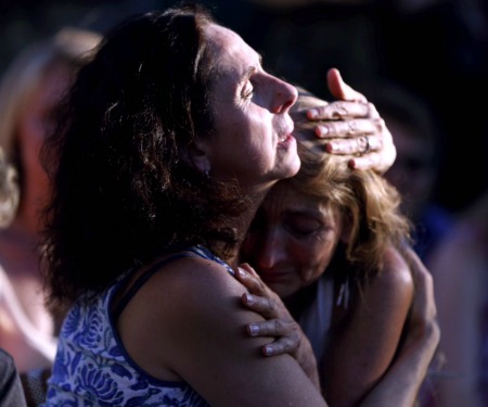 Asha Deliverance being embraced at vigil.