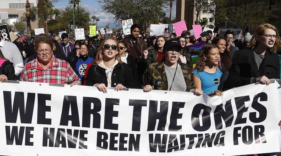 Demonstrators shout as they march in support of the Women’s March on Washington Saturday, Jan. 21, 2017, in Phoenix. Thousands of protesters in Phoenix joined in support of those in cities around the globe protesting against Donald Trump as the new United States president. (AP Photo/Ross D. Franklin)