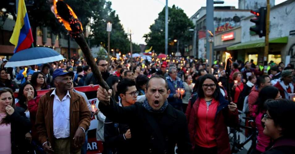 Teachers demand better pay in Bogota, Colombia. (Photo: EPA/Leonardo Munoz)