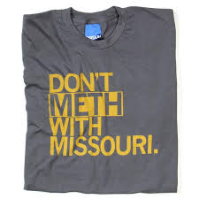 Which brings me back to the movie, “Three Billboards Outside Ebbing, Missouri”. My wife and I are not from Ebbing, Missouri. We’re from St. Louis. In our neighborhood, we’re more likely to run into a Hasidic Jew than a hillbilly. That said, we know folks who have traded teeth for meth. It happens. It’s just not as common as folks think. Which brings us to our new t-shirts. My beloved has one that reads, “Washington University in St. Louis”. Mine reads, “Don’t Meth With Missouri.” And neither of us have snipped-off the sleeves. Oh, yea, and neither of us say “Missour-ah”. Although I do say “Wa-R-shington”, and she just hates that….