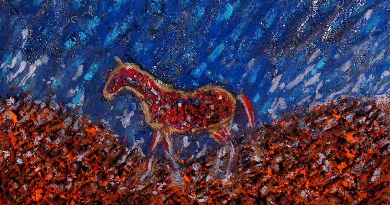 In 1942, Nazi forces captured a portion of the Kalmyk Autonomous Soviet Socialist Republic, home to the Kalmyks – an ethnic group with a language and heritage rooted in Mongolia, most of whom were Tibetan Buddhists. While Kalmyks were predominantly loyal to the Soviet Union throughout the Second World War, and many fought in the Red Army, a small group volunteered to join the Nazi army. Following the Soviet Union’s recapture of Kalmyk territory in December 1943, Soviet authorities declared all Kalmyk people guilty of cooperation with the Nazis and ordered their deportation and exile to Siberia. By the time they were allowed to return home in 1957, roughly half of the Kalmyks had died. The Montreal-based animator Alisi Telengut’s short film Nutag – Homeland is a requiem for the many lives lost during the widespread displacement of the Kalmyk people. Using imagery hand-painted frame by frame, the aching visual poem reflects on a largely forgotten tragedy by blending symbolic motifs with a timeless, mournful folk overtone.