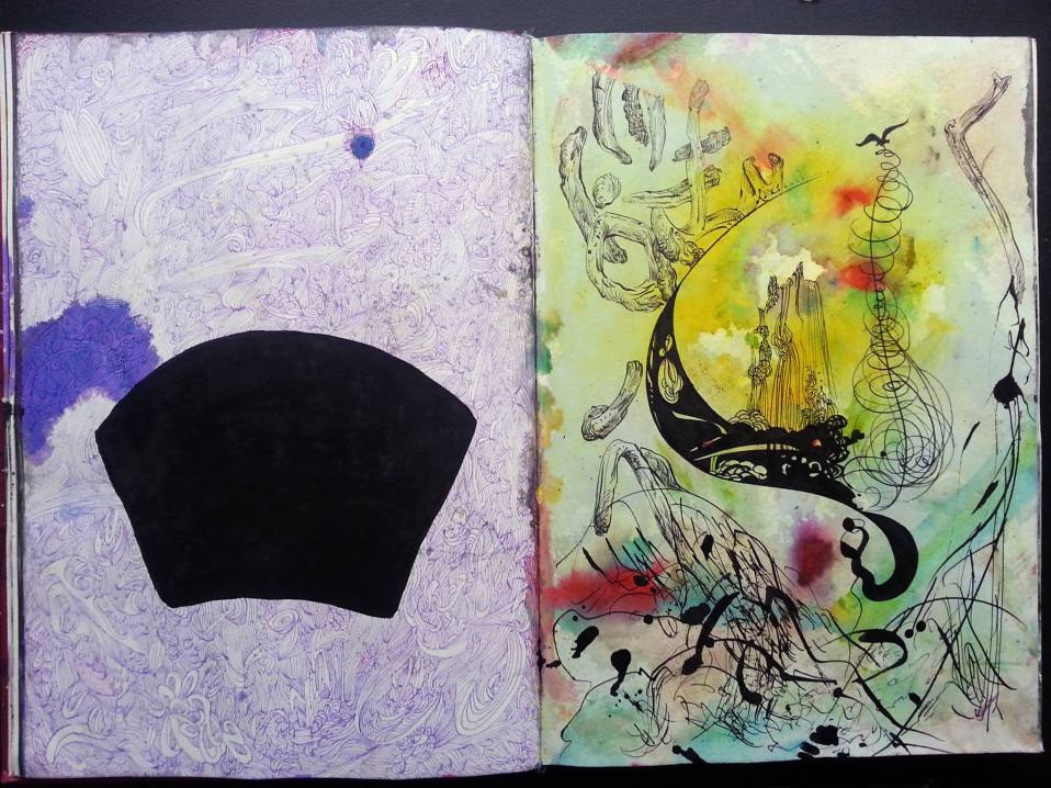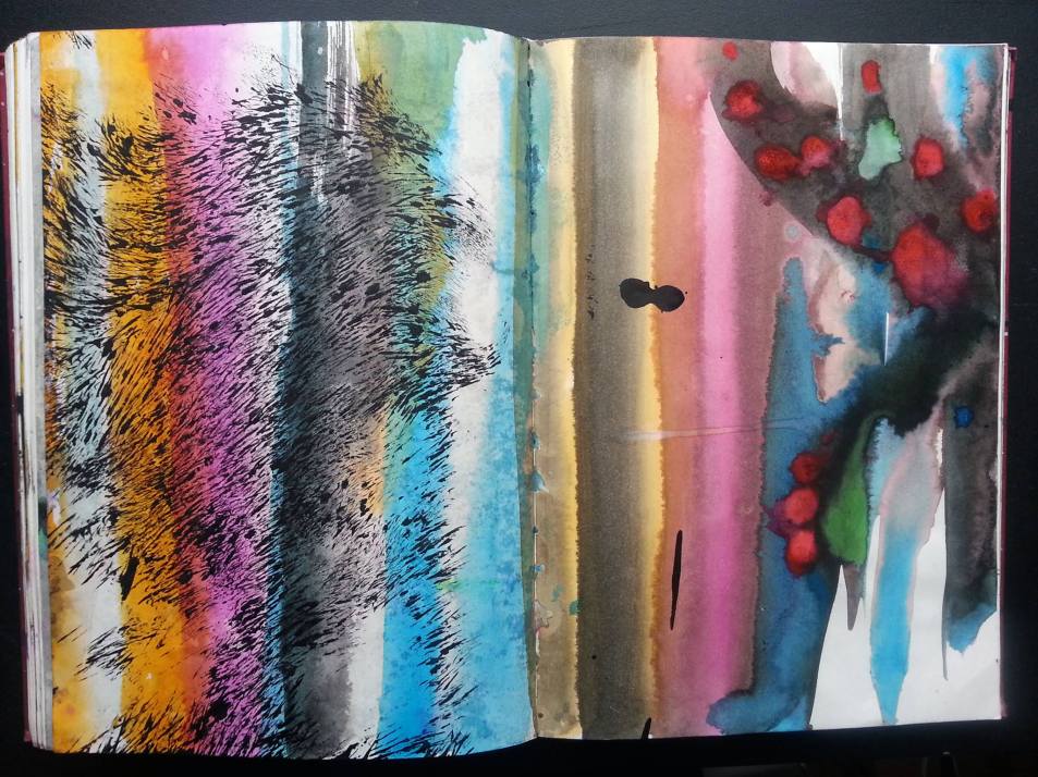 To the little that I understand myself, you gauge my visual temperament rather pertinently. Yes, order means a lot to me; although its not about keeping clothes on the rack. I presume that too threatens to happen soon, but for now one handles what is possible and deals with the vicissitudes of being fastidious. I do allow a lot of room for others in my ambit and in my interactions with others. There is a price and it does not work out too often outside of my artistic labor. Perhaps, it began with me being a weak child?! But the mediums (perhaps a pun is appropriate), the pigments and the inks fly when they are flicked. They take their place, including on walls as in murals. Thats good enough for now. My color schemas can be very complex and color has allowed me to move with it and in it. For that I am grateful. In these pieces — the enciente was drawn by a collaborator in a UK-led Drawing Circle, and I went with it. The color schematics happened of themselves, without may I say, thought. The color does not immediately permit being seen as complimentary. My appreciation goes to Michael Simms who curated this set. In so doing, a sense, a nature of myself was gifted. I may in all probability picked the ones with flashy brush moves, or flicks as high-technique. In doing perhaps allude to some insecurities! This does not happen often, and perhaps its how bigger artist feel — those, for whom interacting with curators is plentiful, and rightfully so. So, thank you for coming by, and sharing your thoughts so cogently. Much appreciation and respect.