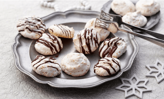 Bake for about 20 minutes until dry to the touch. Turn oven off and open door slightly and let cool in oven for 10 minutes. Transfer to rack to cool completely. If desired, drizzle with melted chocolate.