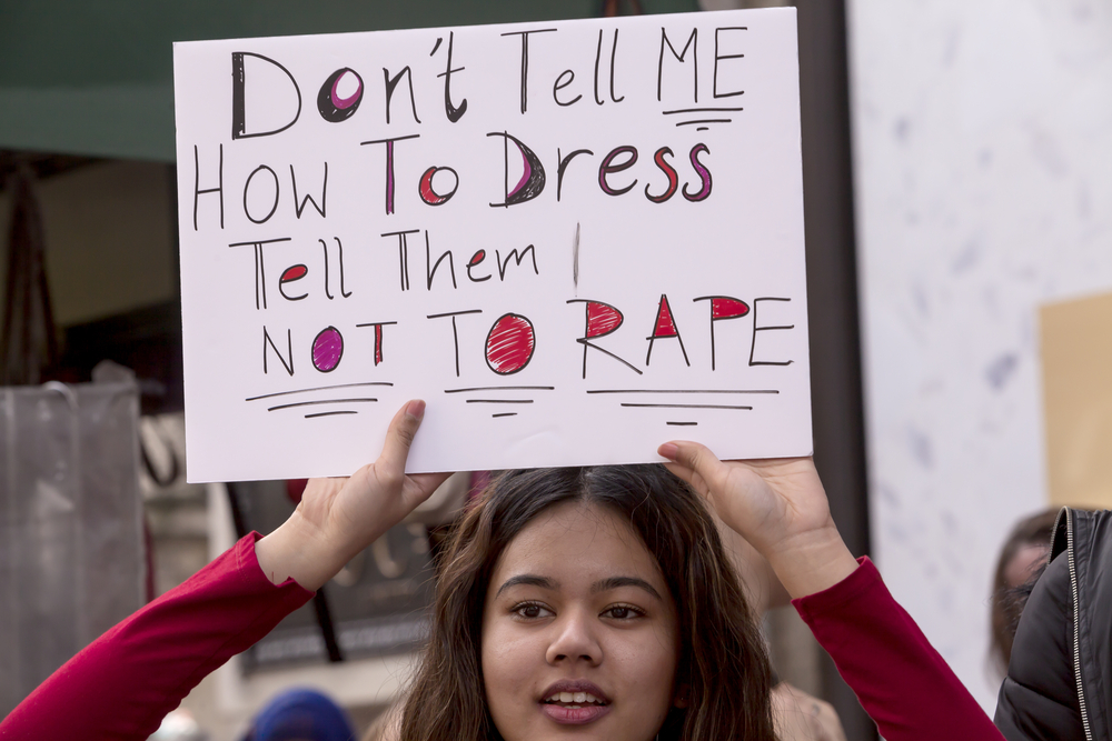 “Don’t tell me how to dress. Tell them not to rape.” [Shutterstock]