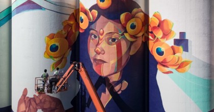 Improbably, we found a welcome break from MAGA-hatted punks and the debacle that is D.C. in Wichita, Kansas, where immigrant artists are breaking down barriers, celebrating disparate cultures, bringing together Latino and African-American neighborhoods, and oh yeah painting reportedly the world’s largest, wildest mural by a single artist, on grain elevators yet. The eruption of art and activism is the work of Horizontes, (“horizons” in Spanish), a grant-funded initiative created by artist and community organizer Armando Minjarez, who immigrated to the U.S. in 2001 and seeks to celebrate both immigration and the rich culture and history it brings to communities. An exhibit of Horizontes’ projects opens this weekend at Wichita’s African-American Museum.