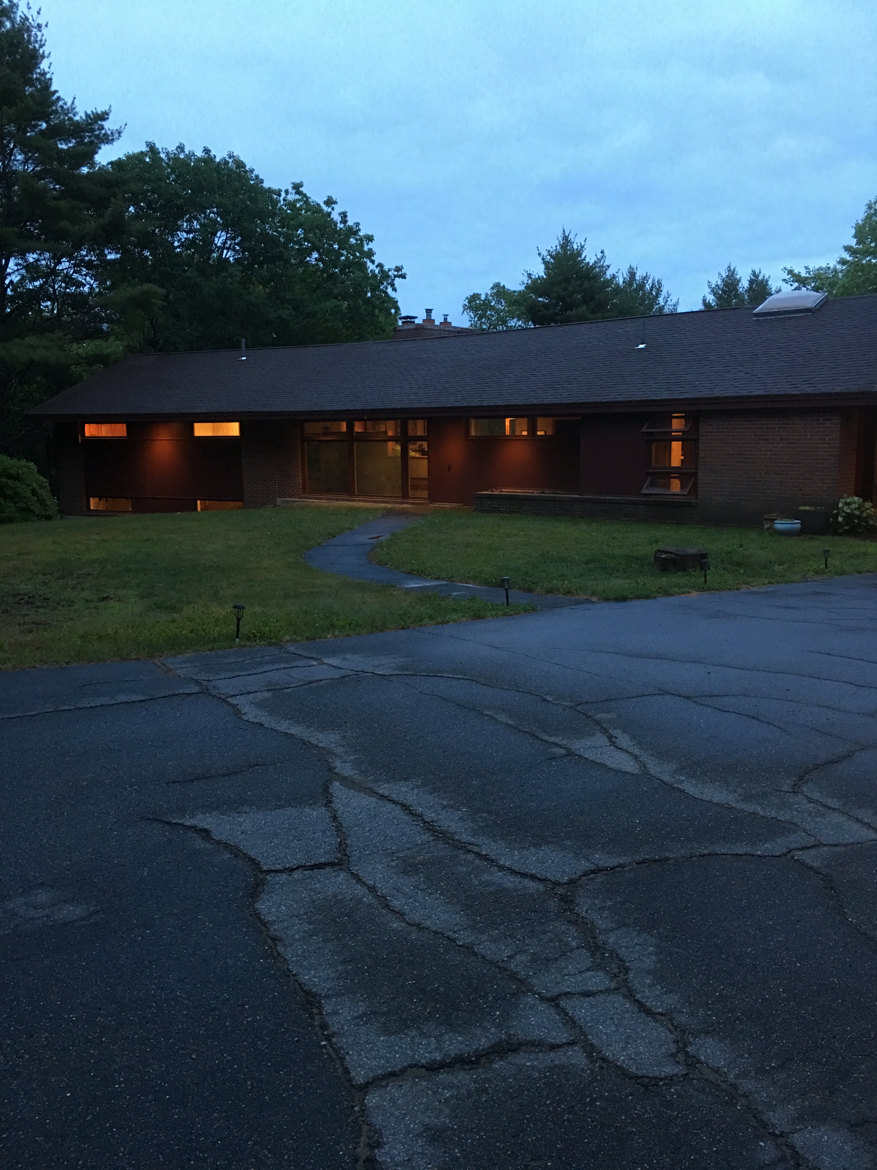 But Hope was in her mid-nineties when Nate and I bought her house, so there was an ungodly amount of bramble and all kinds of other weedy mayhem choking the blueberry bushes out. And the septic system was long gone. And the roof—all six-thousand square feet of it—would have to be replaced. And the Eisenhower pink carpet in the kitchen could make a mostly-fretful person dizzy. And there was green shag in the party room downstairs that had to go. And the house’s low voltage electrical system that had been popular for about two minutes during the late 1950’s was a mostly-incomprehensible blunder involving something called relays that nobody alive in Maine today seems to have the first clue how to fix.