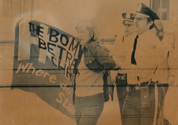 But now that I am older, I have a better sense of how hard it was for her to be away from us by watching her struggle with my sister’s and brother’s arrests and know that she has struggled with mine as well. We can’t tell her, “Oh, no big deal. It’s just a little arrest.” She knows — better than most — what it takes to cross the line. I happened to be in Baltimore with her when my sister rappelled off the side of the TransAmerica building in Los Angeles to hang a banner for the Rainforest Action Network.