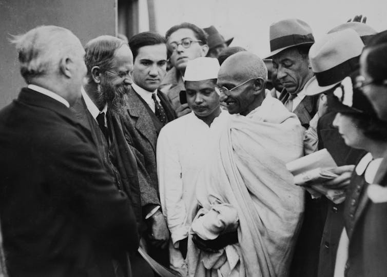 Our research into Gandhi’s early life and writings suggests his views were radically shaped by the unprecedented opportunities that steamships, railroads and the telegraph provided. The growing ease of travel, the circulation of print media and the increase in trade routes – the hallmark of the first wave of globalization from 1840 to 1929 – impressed upon Gandhi the myriad of challenges facing society.