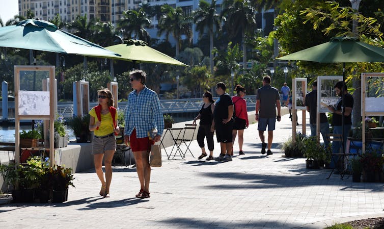 This was the finding from one study my collaborators and I carried out in West Palm Beach, Florida. A short walk along a downtown waterfront with a design intervention we devised improved both perceived and physiological stress, as measured by heart rate variability.