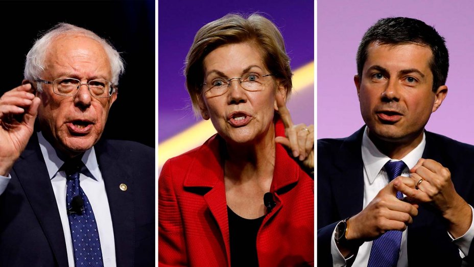 Bernie Sanders, Elizabeth Warren, and Pete Buttigieg