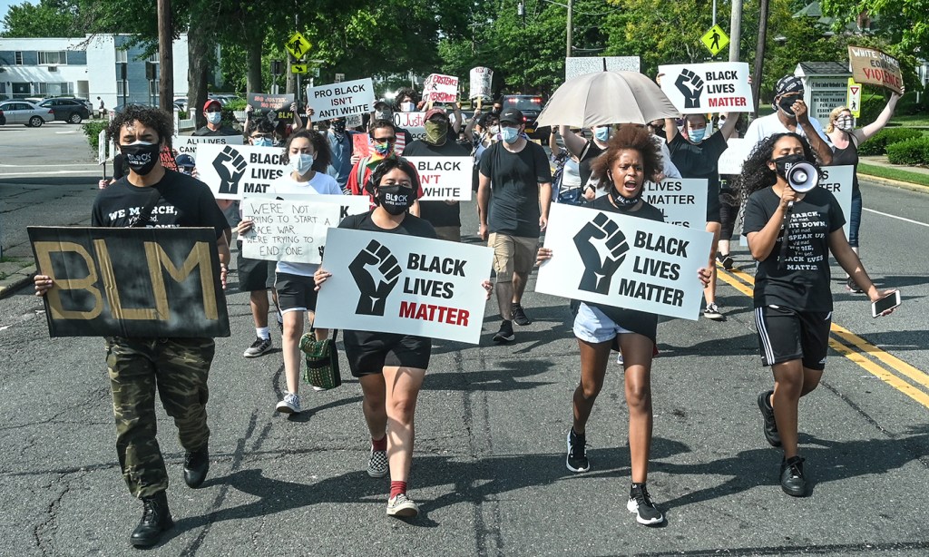 Amityville, N.Y.: Protestors march against racism and police brutality on Broadway in Amityville, New York on on July 5, 2020. (Photo by Thomas A. Ferrara/Newsday RM via Getty Images)