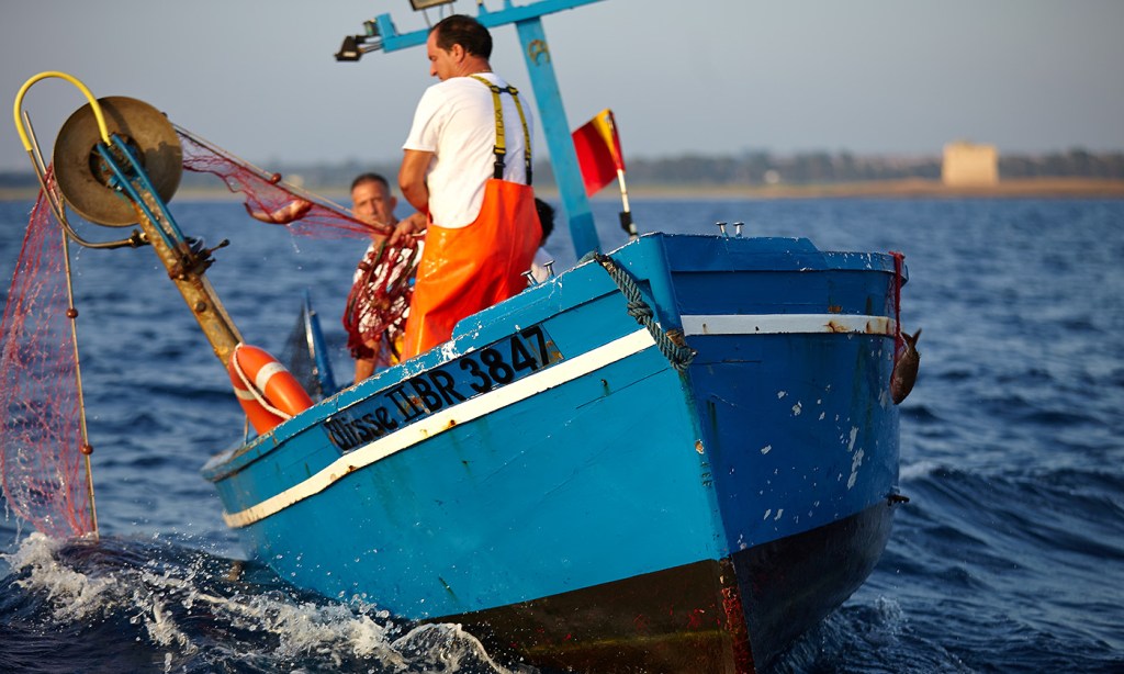 When his boat is in position, Di Biasi throws the half-mile-long leaded net into the water, which is then held up by a series of floating buoys. After this quick operation, the fisher returns home. The invisible wall will lay all night, waiting for fish to get entangled. The morning after, Di Biasi wakes up at sunrise, goes to the bar to get a coffee and a croissant, and navigates his boat back to the reserve to load up the abundant catch of the day.