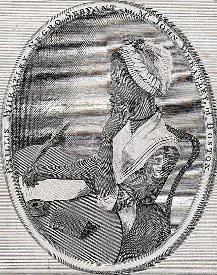 Phillis Wheatley, also spelled Phyllis and Wheatly (c. 1753 – December 5, 1784) was the first African-American author of a book of poetry. Born in West Africa, she was sold into slavery at the age of seven or eight and transported to North America. She was purchased by the Wheatley family of Boston, who taught her to read and write and encouraged her poetry when they saw her talent. On a 1773 trip to London with her master’s son, seeking publication of her work, she was aided in meeting prominent people who became patrons. The publication in London of her Poems on Various Subjects, Religious and Moral on September 1, 1773, brought her fame both in England and the American colonies. Figures such as George Washington praised her work. A few years later, African-American poet Jupiter Hammon praised her work in a poem of his own. Wheatley was emancipated by the Wheatleys shortly after the publication of her book. She married in about 1778. Two of her children died as infants. After her husband was imprisoned for debt in 1784, Wheatley fell into working poverty and died of illness. Her last infant son died soon after. (adapted from Wikipedia)