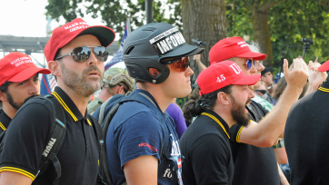 Established in the midst of the 2016 presidential election by VICE Media co-founder Gavin McInnes, the Proud Boys are self-described “western chauvinists” who adamantly deny any connection to the racist “alt-right,” insisting they are simply a fraternal group spreading an “anti-political correctness” and “anti-white guilt” agenda. (Source: Southern Poverty Law Center)