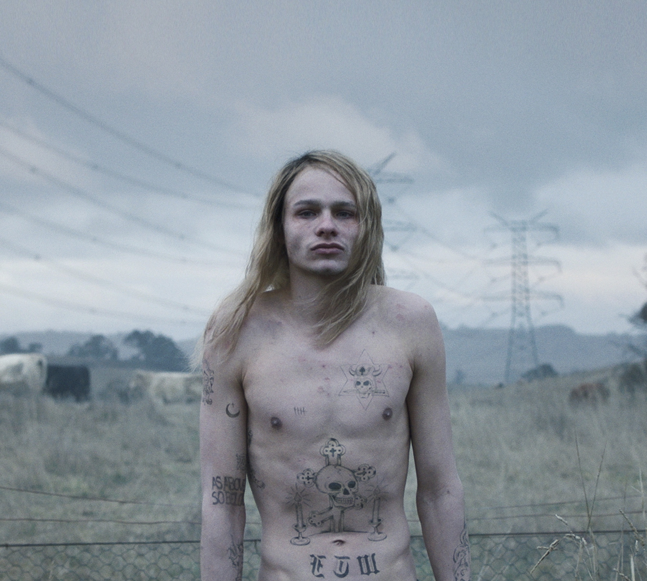 “While we were shooting, an unwelcome storm front made for hellish conditions. The temperature dropped to zero, it snowed in the morning, and the wind was piercing. Fortunately, it added to the overall brooding atmosphere, but poor Toby Wallace, who plays the lead metalhead, had to brave those temperatures shirtless. On top of that, there were unhappy toddlers, non-actors, wayward cow wrangling, impatient logging trucks, complex blocking, and an early sunset. I honestly can’t believe we actually got a take that worked. One take! The last one. That’s the one in the film. It was a mammoth effort to pull off and it wouldn’t have been possible without our crew’s insanely generous contributions.”