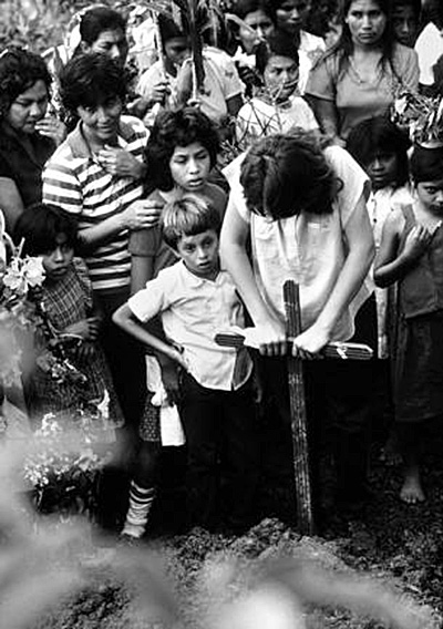 "War is peace. Freedom is slavery. Ignorance is strength.” A man in battle camouflage holds a machete at the throat of a peasant farmer on his knees genuflecting in a shallow grave he just dug. Far from the scene of this photo our free-world leader speaks. Into a microphone, he says of the men in camouflage that they are “freedom fighters, the moral equivalent of a founding father.” The farmer’s terrorized eyes gaze from the page of the magazine, which doesn’t show the blade cutting the stem where life flows to a living brain, heart’s rhythm visible in spouting blood, lungs’ rasp and gurgle, last gulp of air. Killing face-to-face is grotesque business. The moral equivalent of a founding father does it with practiced, awful grace. * Dawn, a quiet highland valley, low clouds drift with smoke from cooking fires, scent of corn tortillas — freedom fighters sift toward sleepy San Gregorio, a few tin-roof shelters, families scratching stony bean plots to survive, resettled from the northern war zone by their government, “a cruel clique of Godless men,” says our leader, the great communicator who paints his words on waves of air that flow to the people as he speaks about people he refuses to meet or talk with. With assault rifles and grenades the freedom fighters set their ambush by the hut that serves as school. The great communicator doesn’t say this. And our newspapers don’t tell us. And memory hungers not to forget thunder of Hotchkiss guns in South Dakota, shrapnel tearing infant flesh, a photo — the old chief hooded in a white rag, his frozen corpse rising from the snow. Now there are six children aged five through eleven, life evacuated from twelve brown eyes. And their teacher, a pretty young woman from Managua, whose father, a man of private enterprise, friendly to our leader, says, sadly shaking his head, he doesn’t know what she was doing there anyway. * Sunday in September — freedom fighters launch their rocket toward a bus, northbound, the road to Jinotega. Flame of gasoline explosion — black smoke with a red tongue licks and whispers into the air that freedom is not just a word — 19 women, traveling to visit their sons, in the Sandinista army near Matagalpa, are dead. The freedom fighters dissolve into cloud-forest mountains of wild green parakeet, squirrel monkey, jaguar where they don’t hear our leader talking and talking, where they know killing face-to-face is grotesque business. We watch the face of business as it smiles, talks about God and freedom and says “moral equivalent of a founding father” with practiced, awful grace.