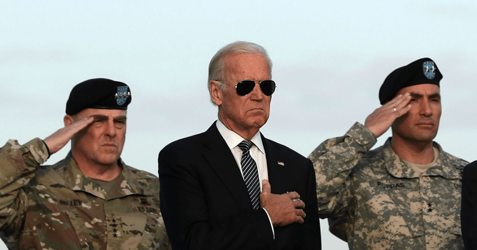Then Vice President Joseph Biden attending a dignified transfer for Army Pfc. Tyler R. Lubelt of Tamaroa, Illinois, at Dover Air Force Base November 15, 2016 in Dover, Delaware. Lubelt, 20, died November 12 of injuries sustained from a suicide bomb attack at Bagram Airfield near Kabul in Afghanistan. (Photo: Alex Wong/Getty Images)