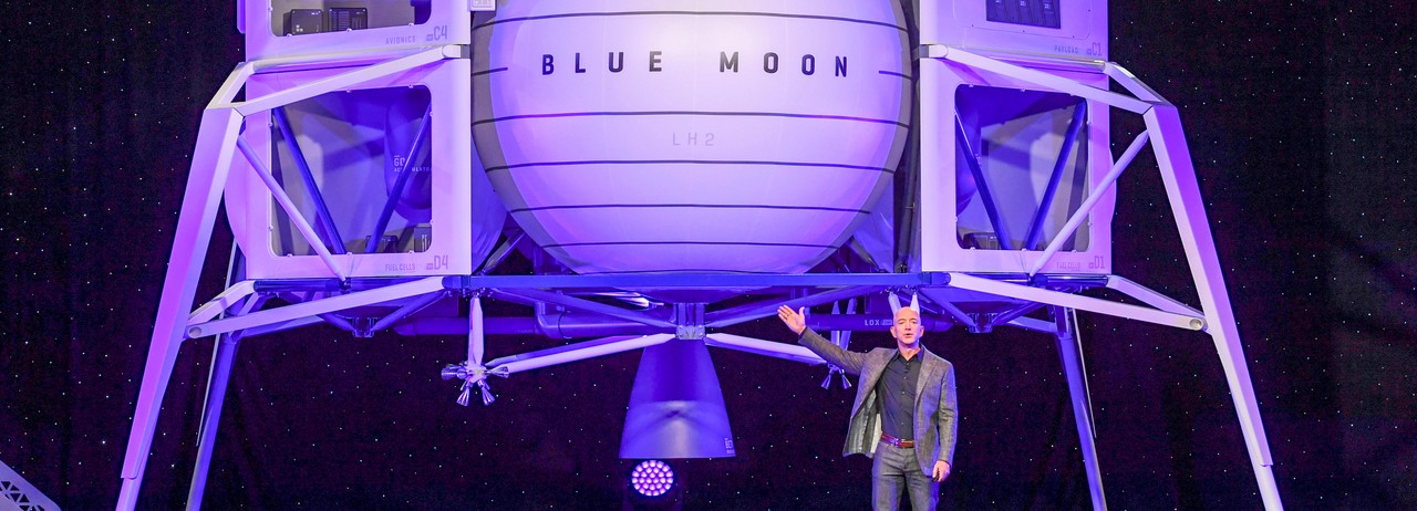 WASHINGTON, DC – MAY 9: Jeff Bezos, founder of Blue Origin, introduces their newly developed lunar lander “Blue Moon” and gives an update on its progress at the Walter E. Washington Convention Center. (Photo by Jonathan Newton / The Washington Post via Getty Images)