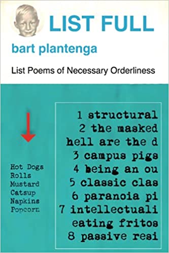 The poems in Bart Plantenga’s List Full seem like an attempt to take the list and transform it from statistic, survey, or commodity, even, into something of much more human stature and quality. This is probably where List Full is at its most subversive—when at the end of say, “List of Mystifying Details, Ann Arbor, 1978” or “List Salvaged From Waste Paper Basket of Another Ex [1980]”, you realize the joke, humor, or furtive mystery behind it. And although it most assuredly moves toward the subversive, it does so subtly and in ways that aren’t always obvious. You don’t need to laugh or go “oooh” or “aaaahh” to come to grips with sudden revelations of List Full. And the emphasis is always on revelation rather than eliciting a shocked response.