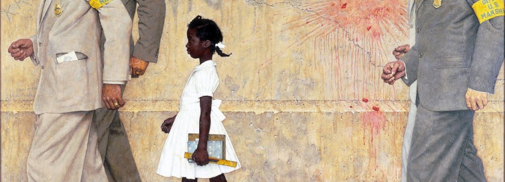 Norman Rockwell’s painting of Ruby Bridges, who at six became the first African American student to integrate a school in the American south. Born the same year as SCOTUS’ ruling on Brown vs Board of Education, she walked past a crowd of screaming racists to enter an all-white elementary school in New Orleans attended by her mother and four federal marshals. Rockwell titled the picture The Problem We All Live With, and it still is. ( source: AP)