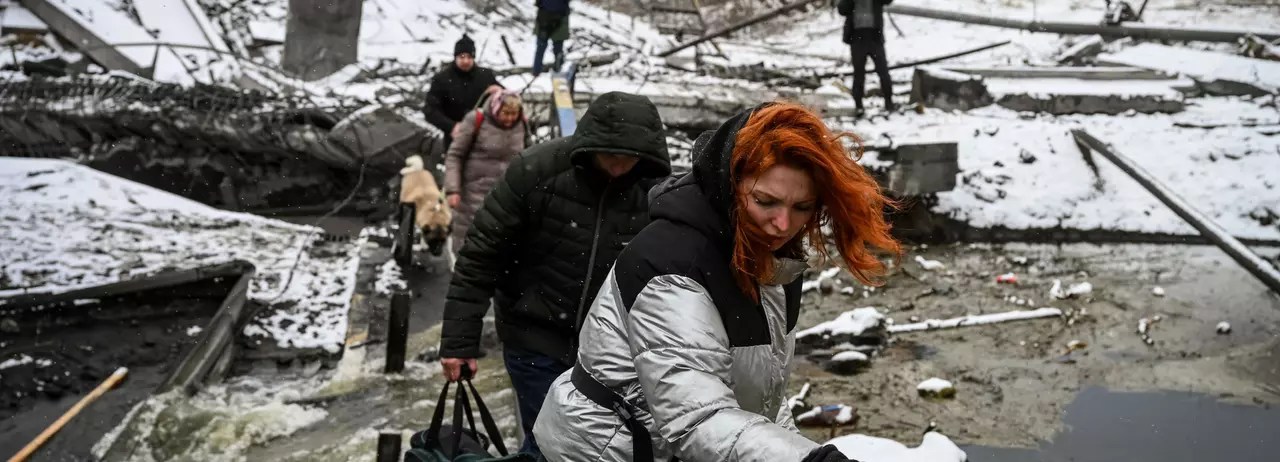 Video footage from Kyiv showed residents scrambling to flee on Tuesday as Russia’s 40-mile-long convoy of tanks and armored vehicles approached the city.