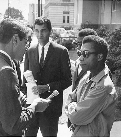 Howard Zinn, James Baldwin, and a journalist on Freedom Day in Selma, Alabama, October, 1963.