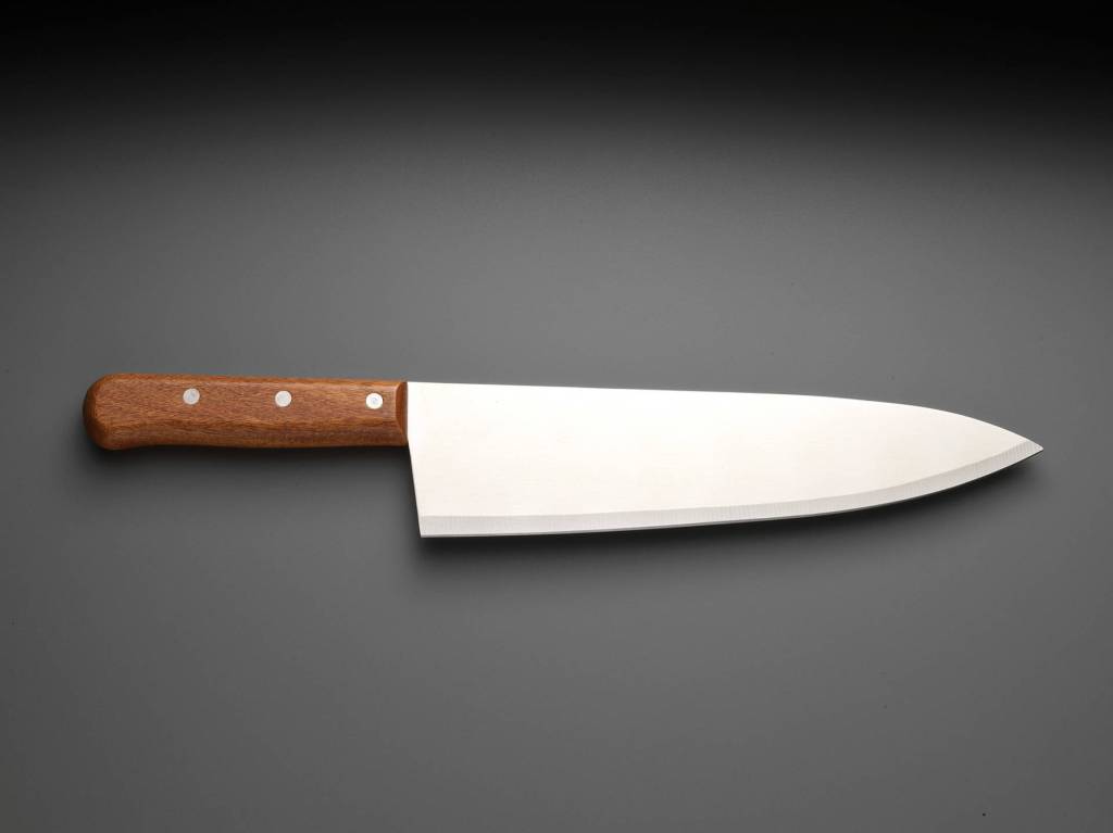 his, as he turns the knife in his hands and turns it;