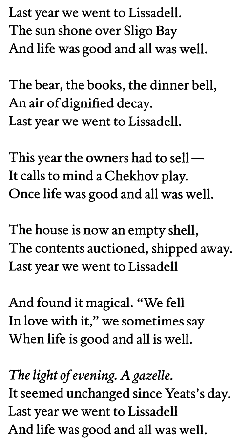 Wendy Cope (born 1945) was raised in Kent, England, where her parents often recited poetry to her. She earned a BA in history and trained as a teacher at Oxford University. Cope taught in primary schools for many years before publishing her first book of poetry, Making Cocoa for Kingsley Amis (1986). The collection was an incredible success, selling tens of thousands of copies in the UK. It also announced Cope’s remarkable talents for parody, word play, dexterity with received forms, and the use of humor to address grave topics. Cope’s poetry collections include Serious Concerns (1992); If I Don’t Know (2001); Two Cures for Love: Selected Poems 1979–2006 (2008); Family Values (2011); Christmas Poems (2017), and Anecdotal Evidence (2018). (Adapted from Academy of American Poets)