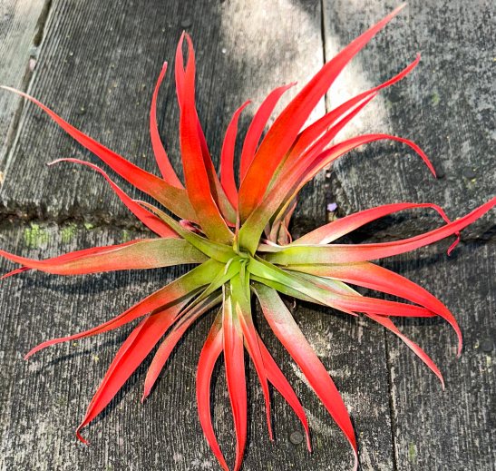 This Tillandsia Capitata Peach is approximately 2-3 inches tip to tip.