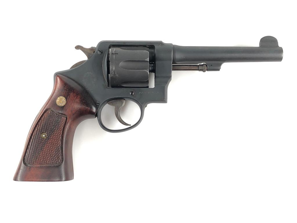 Image: Smith and Wesson M1917 Revolver. This firearm was one of the service pistols used by the US Army in World War I and II. (Source: National Museum of American History)