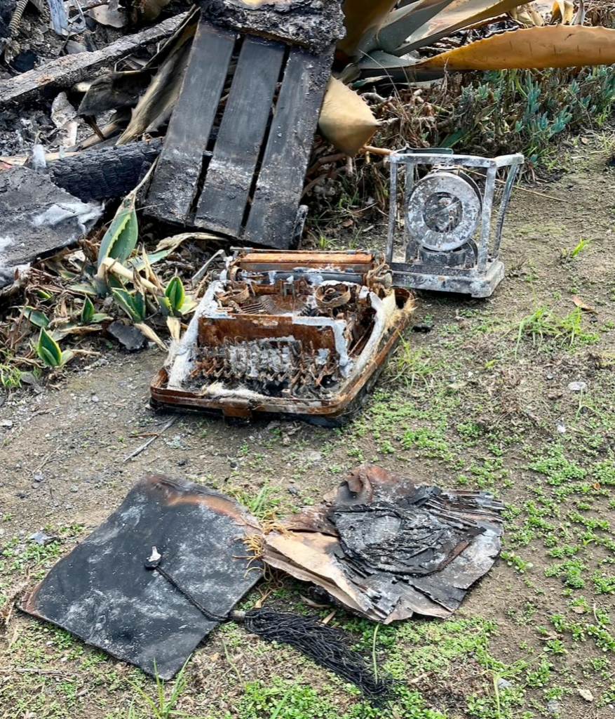 Author’s note: On January 7, 2025, our home in Pacific Palisades burned to the ground along with over 50% of the town. I have walked through and visited the area several times now. The scope of destruction is overwhelming, unfathomable. All hyperbole applies. To the Palisades and Alta Dena burn sites both. Comfort comes with community and the greater human impulses to connect, support, and create anew. Such loving, magnificent energy we’ve felt and witnessed first-hand astonishes as much as the original firestorm itself. We managed to wrest a few treasures from their crypt of cinders & ash or at least to photograph them, including the ruined beauty of my old doctoral mortar boards and 1957 Royal Quiet De Luxe typewriter.