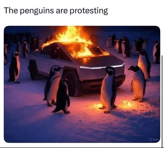O.M.G. Abby, I am laughing out loud holding back tears of anger and a certain kind of despair. What I believe will happen (and for this he has fucked us all – penguins and the rest of the world): as he said, “now the rest of the world wants to see if there is any way they can make a deal. It’s going to be unbelievable. We’ve never seen anything like it.” he hopes that all the affected countries’ heads of state will come crawling and, like your penguin, say “Sir, what can we do to make this right? Just get rid of the tariffs and we do whatever you had in mind.” And he’ll feel like the Emperor of a disenfranchised world. He is a demented Mafia boss with a need to become Pope. Sad thing is, once he is truly out, the Stephen Millers of this world will take over. Bigly.