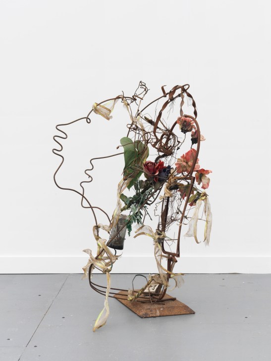 Sculpture by Lonnie Holley. Memorial at Friendship Church, 2006, metal, found debris, plastic flowers and ribbon.