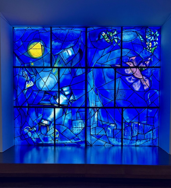 I saw those windows around 1990, spending a long amount of time gazing in wonder and awe. Then wrote a poem about gazing in wonder and awe. Oh that blue of Chagall covered my psyche with hope. But I never got far into the details, as Laurence Musgrove does. His is a more remarkable vision, and he brings out the underlying intentions of Chagall, and ties them to us now. The tender flow of his poem gives Chagall his due. Thanks for this.