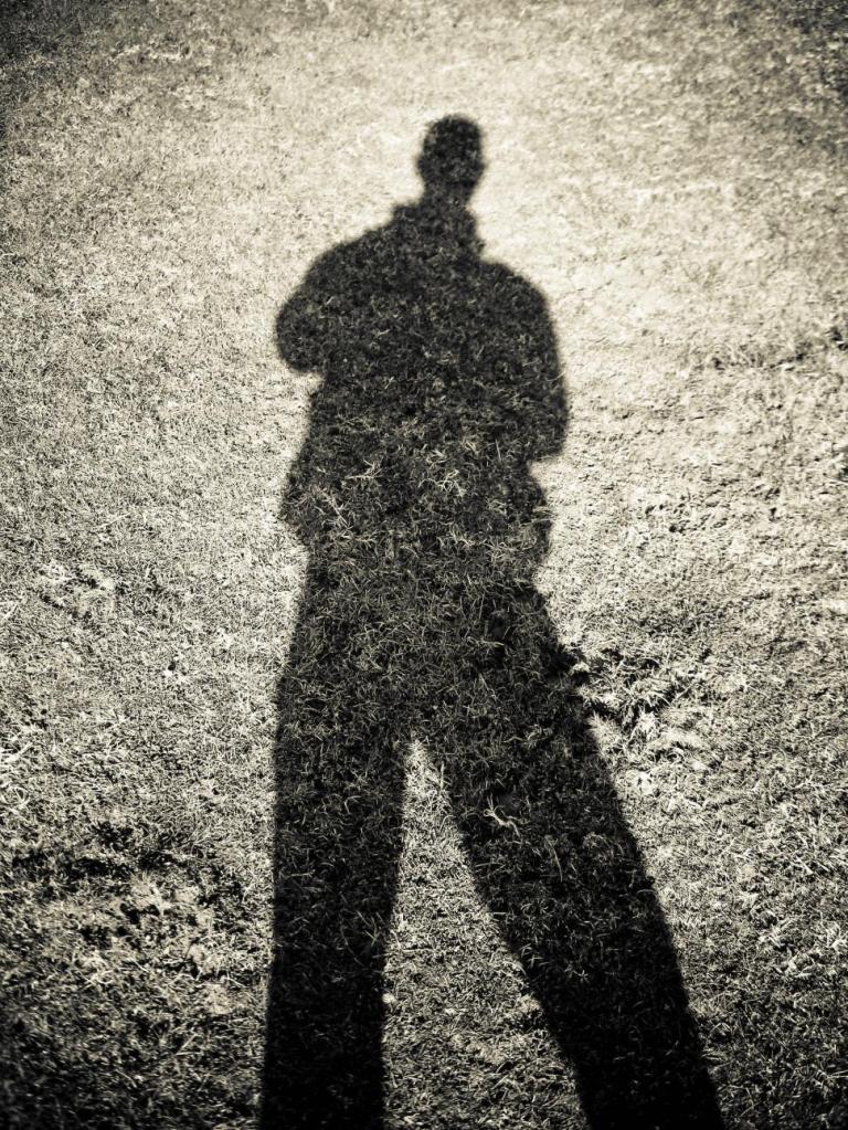 I look twice at my walking shadow.