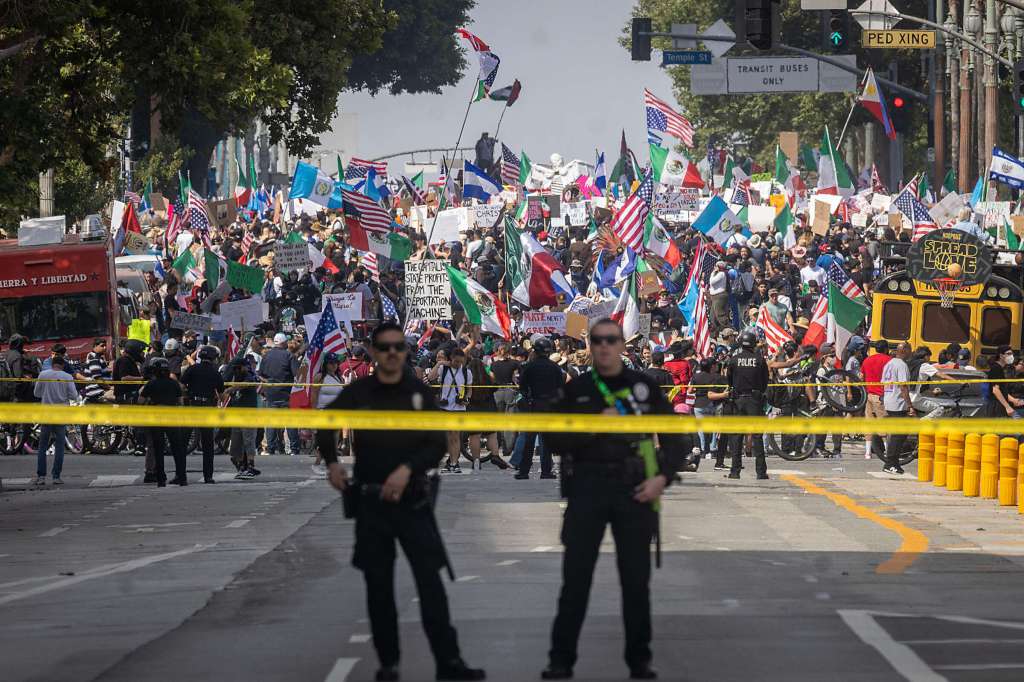 Thousands of protesters rally in Downtown Los Angeles, California, during an anti-Trump demonstration on June 14, 2025. BARBARA DAVIDSON / GETTY IMAGES