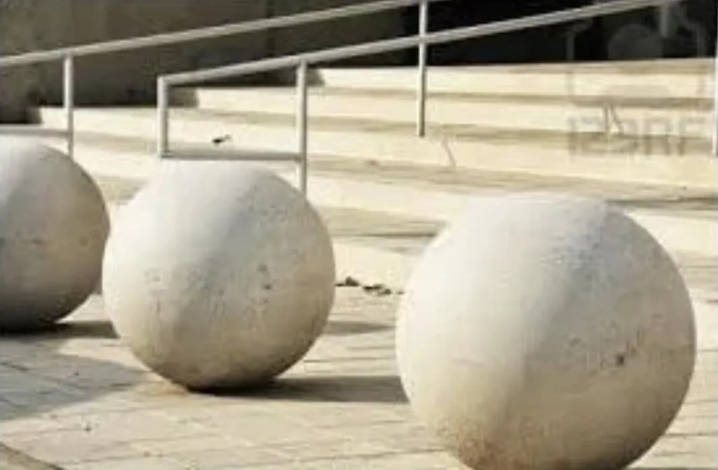 In the cushy San Diego suburb of La Jolla, there is an overpriced mall with balls like the ones in the photo that block paths in the underground, dimly lit parking garage. After taking my daughter-in-law to lunch after my first meeting to discuss options with my oncologist, I fell over one and broke my foot. That was when I first realized there is something evil about them and they are out to get us.