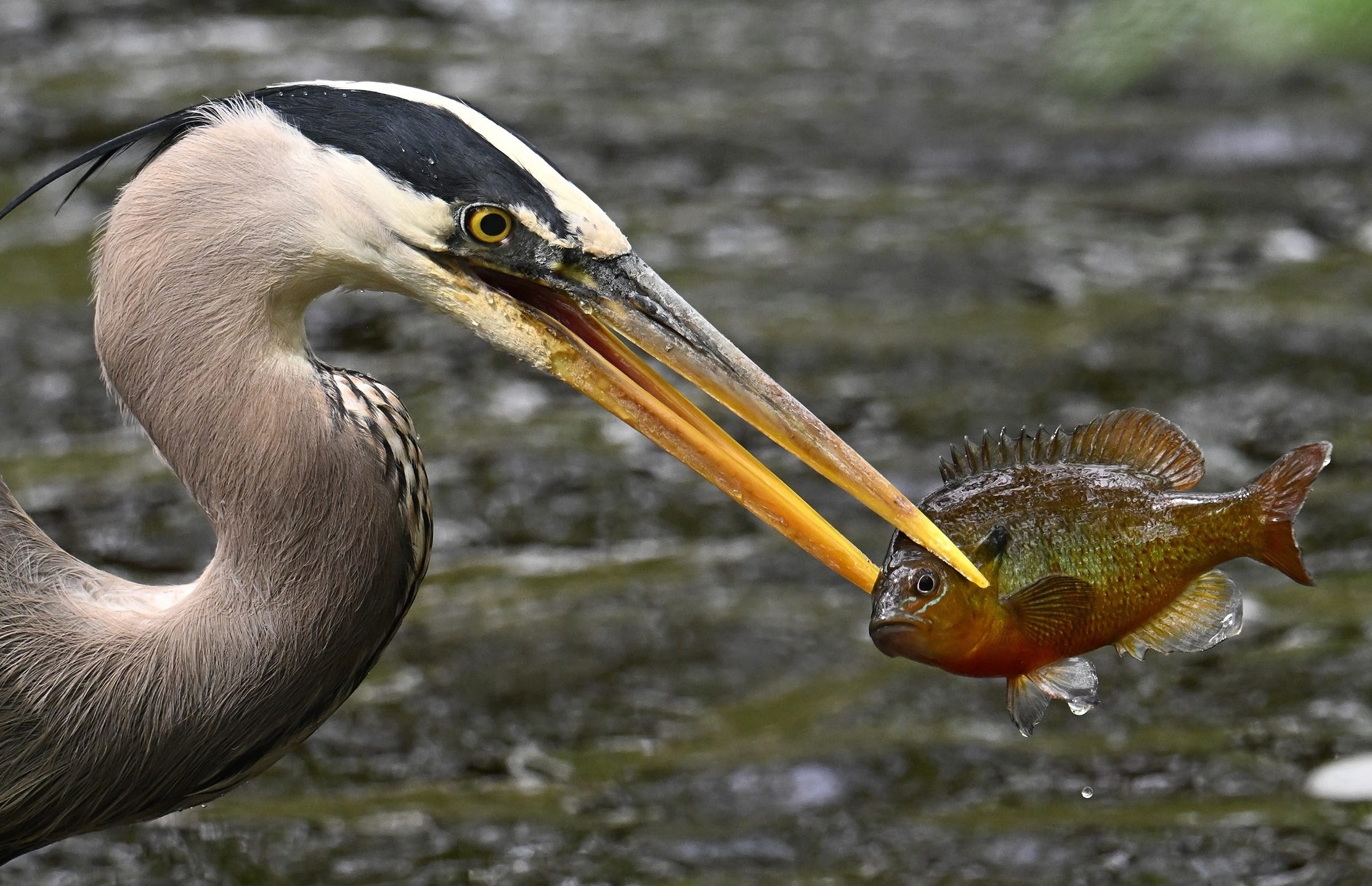 A heron snatches a sunfish out of the Charles River. (Photo: Derrick Z. Jackson)
