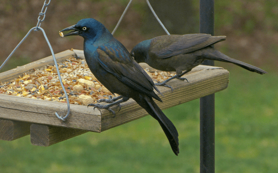 its feathers. Grackles fan their wings,